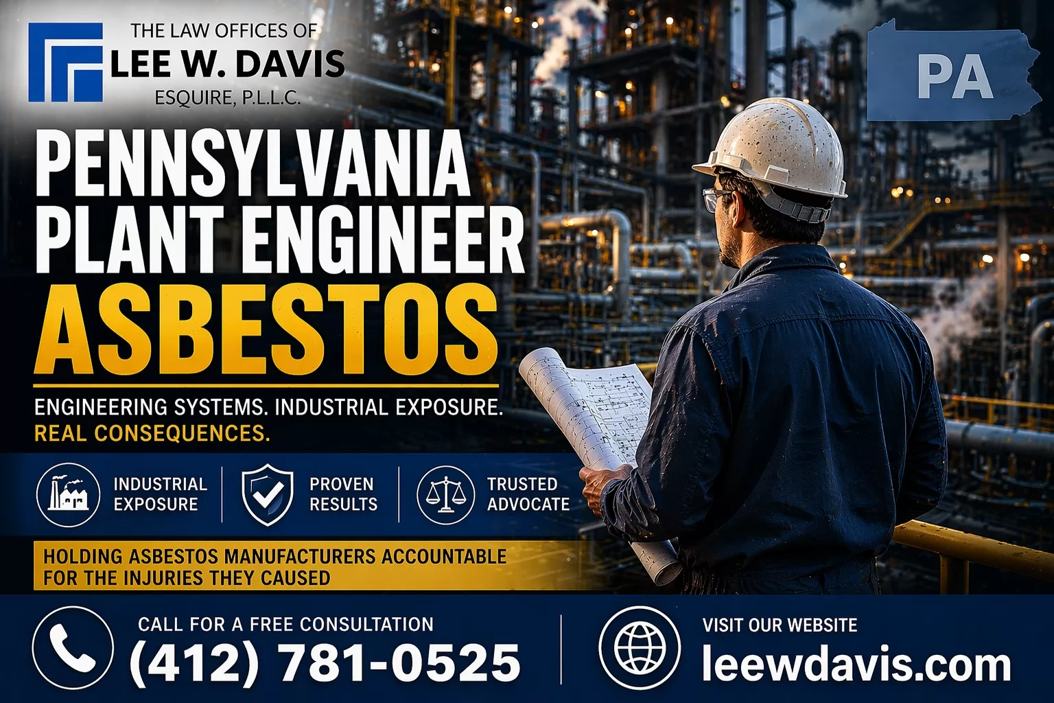 If you worked as a plant engineer at a western Pennsylvania industrial facility and you’ve been diagnosed with mesothelioma or lung cancer, Pennsylvania plant engineer asbestos exposure is a well-documented but frequently overlooked occupational history that has supported successful claims for industrial engineers and their families. Plant engineers occupy a unique position in the asbestos exposure landscape — not because they worked with asbestos-containing materials directly as a function of their trade, but because their role took them into every corner of the facilities they managed, throughout every phase of maintenance and outage work, across careers that often spanned thirty or more years at facilities saturated with asbestos-containing materials.