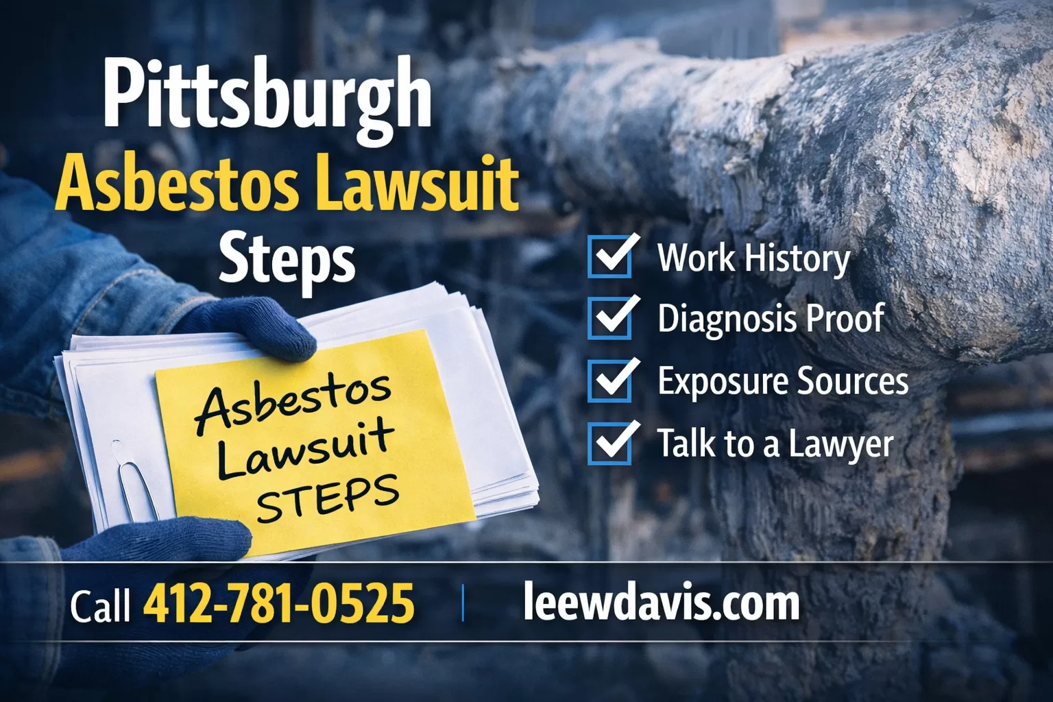 Call 412-781-0525 or contact me through leewdavis.com to discuss the next Pittsburgh Asbestos Lawsuit Steps for your case.