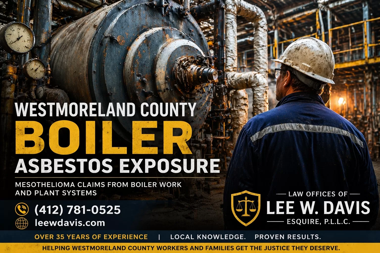 If you worked on boiler systems at a Westmoreland County industrial facility and you’ve been diagnosed with mesothelioma or lung cancer, Westmoreland County boiler asbestos exposure is a well-documented occupational history that has supported successful claims for workers and their families throughout the region. Westmoreland County’s industrial base — its steel-related operations, manufacturing plants, power generating stations, and the supporting industrial infrastructure throughout Greensburg, New Kensington, Latrobe, Jeannette, and the surrounding communities — relied on boiler and steam systems throughout their operational lives, and those systems were insulated with asbestos-containing materials that exposed workers across every trade involved in their installation, operation, maintenance, and repair.